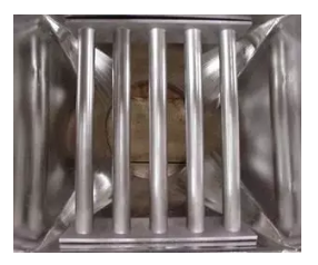 強(qiáng)磁棒上一旦吸附上磁性或弱磁性物質(zhì),通常是比較難去除了,因此易于清潔的設(shè)計(jì)是行業(yè)的一個(gè)良好實(shí)踐。易于清潔的設(shè)計(jì)是在磁棒的外部加一個(gè)夾套,抽取磁棒后,夾套上的磁性消失,吸附的異物自動(dòng)脫落。如下圖所示。