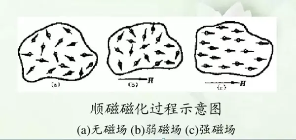 順磁性物質(zhì):在磁場(chǎng)作用下產(chǎn)生與外磁場(chǎng)相同的附加磁場(chǎng),可理解為使原有磁場(chǎng)小小增強(qiáng)。如堿金屬或堿土金屬(鋰(Li)、鈉(Na)、鉀(K)、鎂(Mg)、鈣(Ca)、鍶(Sr)也都是順磁性的。稀土金屬也是順磁性。鈦(Ti)、釩(V)、鉻(Cr)、錳(Mn)等過(guò)渡族元素屬于順磁性。三價(jià)金屬鋁(Al)也是順磁性。